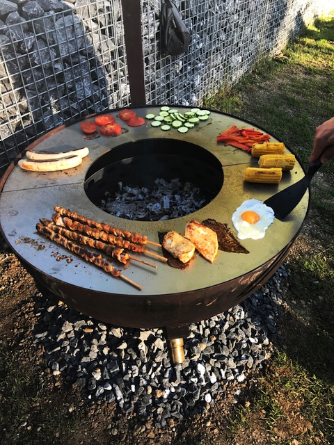 Barbecue mit Grillrost, Lavastein und Antrieb